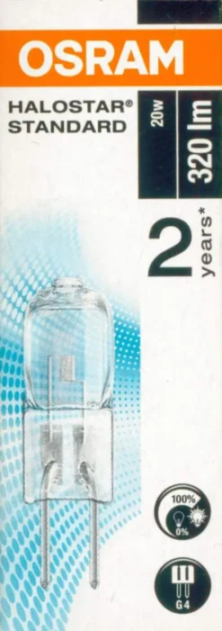 Geliefert wird: Ledvance Halogen-Stiftsockellampe 20W 12V G4 64425 S AX 20W, Verpackungseinheit: 1 Stück, EAN: 4058075094215