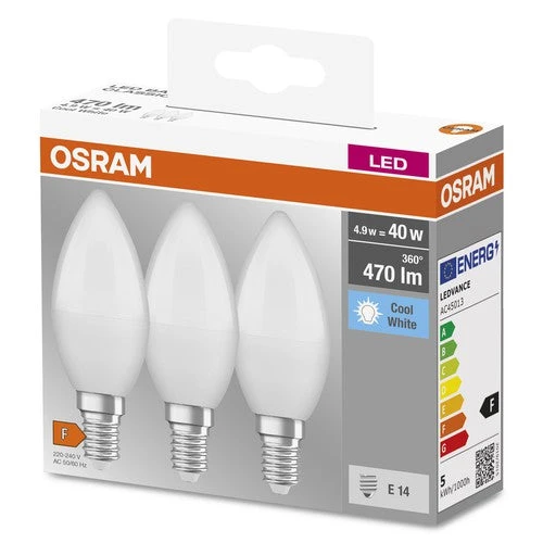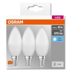 OSRAM LED BASE CLASSIC B Lampe Matt (ex 40W) 5,5W / 4000K Kaltweiß E14, 3er Pack