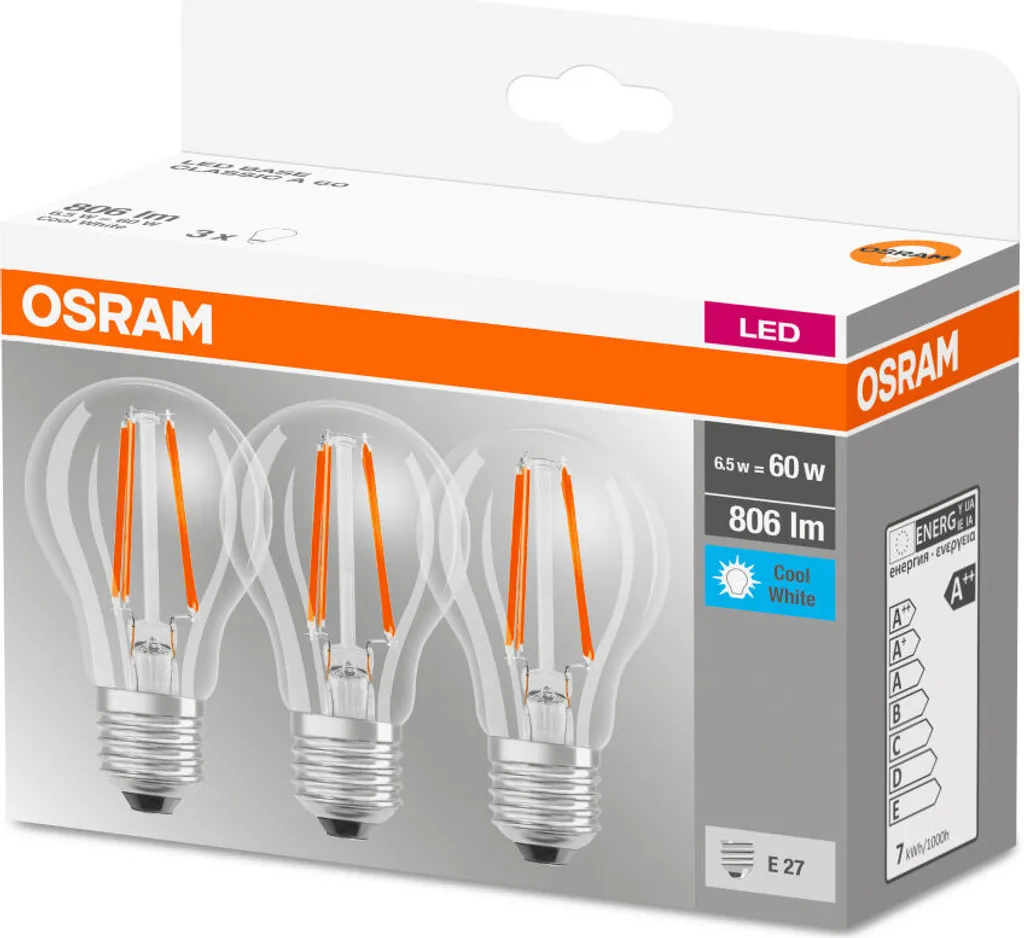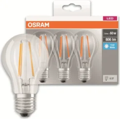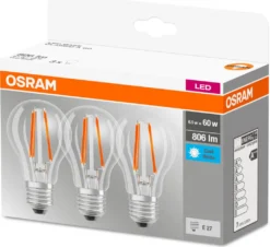 3 x Osram LED Leuchtmittel Base Classic A60 6,5W = 60W E27 klar neutralweiß 4000K