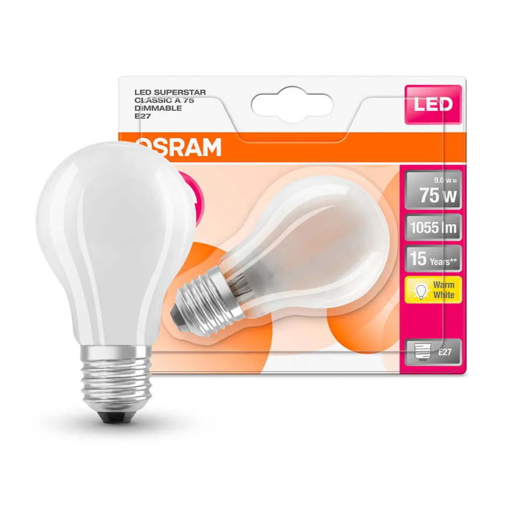 Osram LED Filament Leuchtmittel Birnenform Superstar Classic 8,5W = 75W E27 Matt warmweiß 2700K DIMMBAR