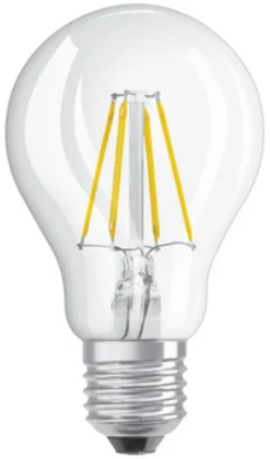 Hochwertiges Markenleuchtmittel mit extrem hohem Lichtstrom und ernormer Lichtausbeute. Dank innovativer LED-Filament-Technologie überzeugt diese LED durch alle visuellen Eigenschaften einer herkömmlichen Glühbirne.rrTechnische Daten:r- Hochwertiges Markenleuchtmittel mit extrem hohem Lichtstrom und ernormer Lichtausbeute. Dank innovativer LED-Filament-Technologie überzeugt diese LED durch alle visuellen Eigenschaften einer herkömmlichen Glühbirne. Technische Daten: Energieeffizienzklasse: A++ Gewichteter Energieverbrauch: 9 kWh/1000 h Betriebsspannung: 230 V Leistung: 8,5 W Entspricht Glühlampe: 75 W Bauform: A60 matt Sockel: E27 Farbtemperatur: 2700 K (warmweiß) Lichtstrom: 1055 lm Lichtausbeute: 124 lm/W Abstrahlwinkel: 320° Geeignet für Akzentbeleuchtung: nein Dimmbar: ja Farbwiedergabeindex (CRI): > 80 Ra Mittlere Lebensdauer: 15.000 Stunden Schaltzyklen: 100.000 Lichtstromerhalt am Ende der Lebenszeit: 70 % Zündzeit: < 1 s Anlaufzeit bis 60 %: < 1 s Leistungsfaktor: 0,9 Quecksilbergehalt: 0,0 mg Gesamtmaße (ØxH): 60×105