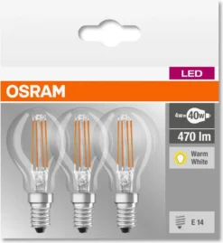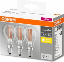 3 x Osram LED Filament Leuchtmittel Tropfen 4W = 40W E14 klar warmweiß 2700K