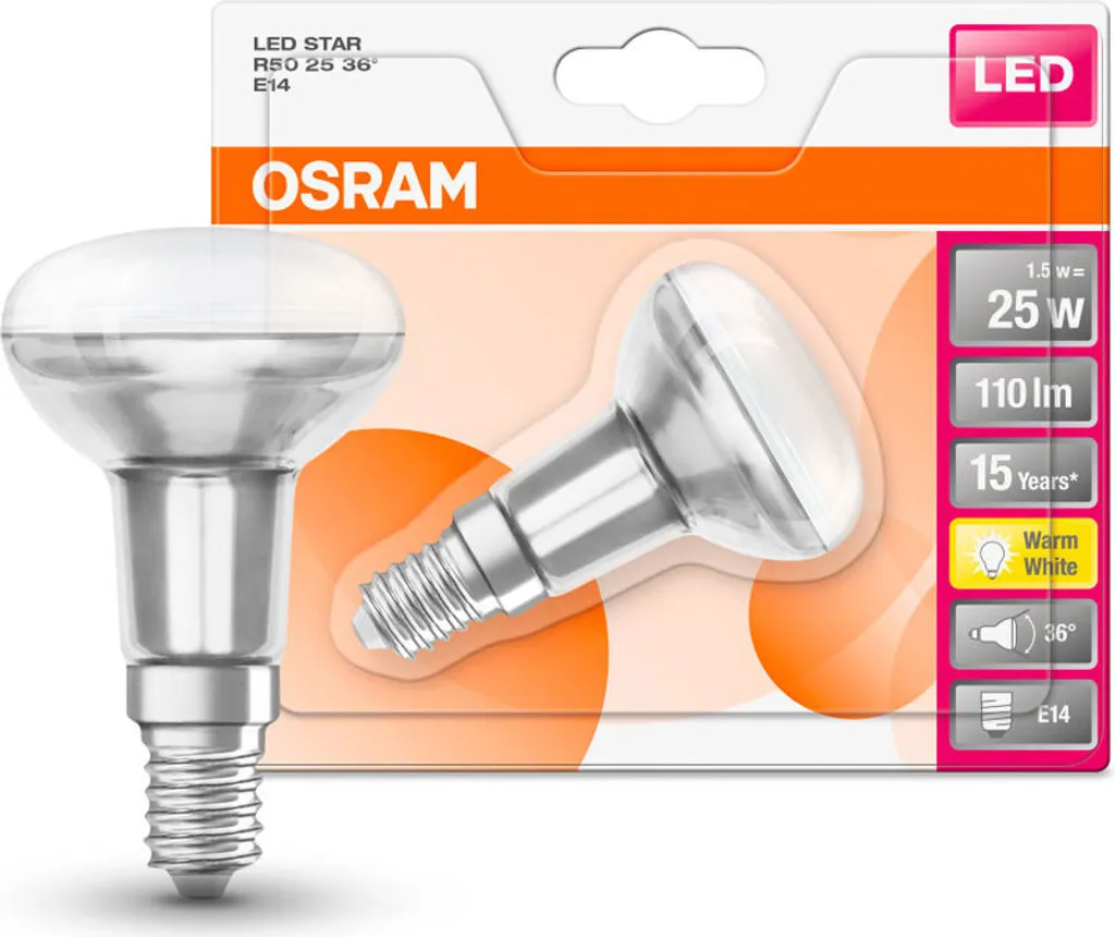 Osram LED Leuchtmittel Star Reflektor R50 1,5W = 25W E14 matt 110lm warmweiß 2700K