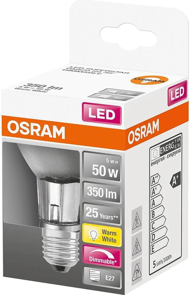 Mit den LED SUPERSTAR LED-Lampen der Marke Osram erwerben Sie die qualitativ hochwertige und dimmbare Version der normalen LED STAR Serie. Diese sind zusätzlich mit konventionellen Phasenanschnitts- und Phasenabschnittsdimmern dimmbar und warten mit einer längeren Nennlebensdauer auf. Die Schaltfestigkeit beträgt 100.000 Schaltzyklen.