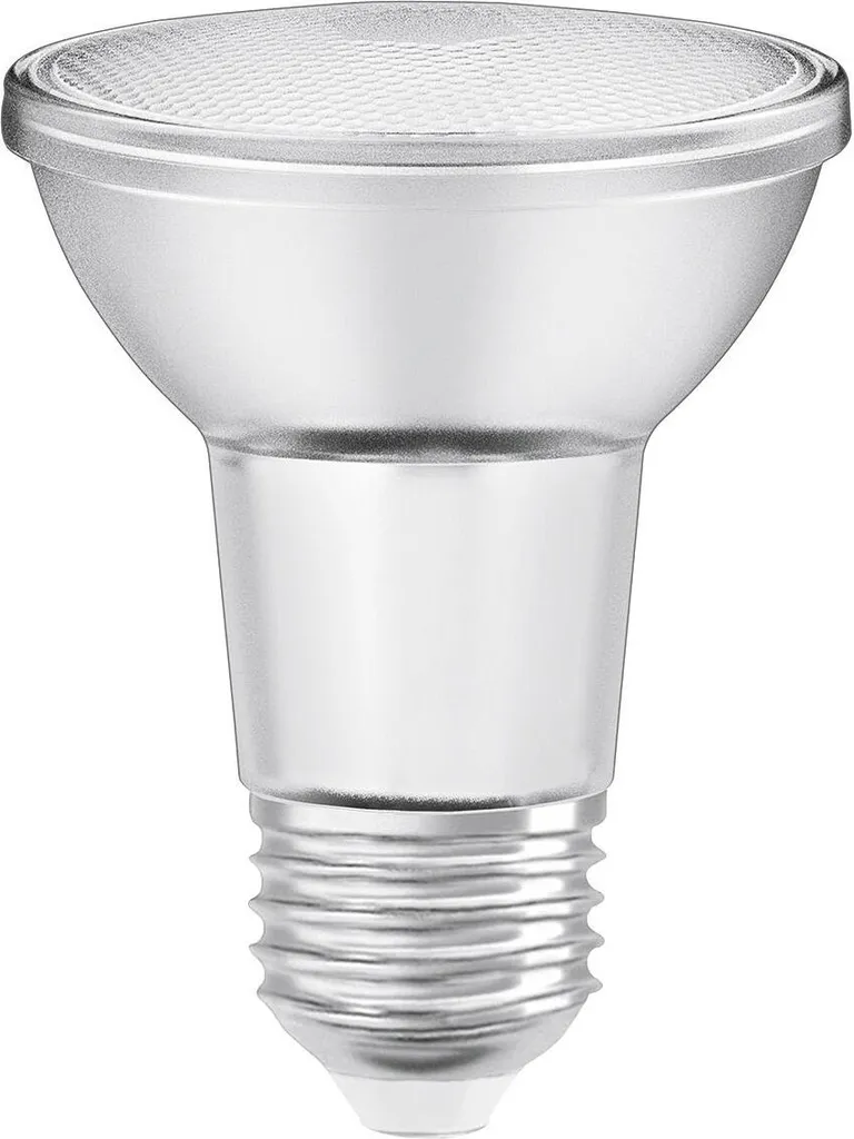 Dimmbare LED-Reflektorlampen PAR20 mit Retrofit-Schraubsockel. Produkteigenschaften: Guter Farbwiedergabeindex Ra: ? 80. Dimmbar (an vielen handelsüblichen Dimmern). Quecksilberfreie Lampen. Produktvorteile: Sehr lange Lebensdauer von bis zu 25.000 h. Geringer Energieverbrauch. Einfacher Ersatz von Halogenlampen dank kompaktem Design. Sofort 100 % Licht, keine Aufwärmzeit. Anwendungsgebiete: Vitrinen und Schaufenster. Museen, Galerien. Ausstellungsräume. Gastronomie. Wohnräume. Als Downlight zur Markierung von Gängen, Türen, Treppen, etc.. Einsatz im Außenbereich nur in geeigneten Außenleuchten.Leuchtmitteltyp: LEDFassung: E27Leistung: 5 WLichtleistung: 350 lmLichtfarbe: 2.700 K (warmweiß)Dimmbar: jaBauart: Reflektor (PAR20Farbe: klarMaterial: GlasMaße: 8,8 x 6,5 cm (L x Ø)Abstrahlwinkel: bis zu 360°Lebensdauer: 25.000 hSchutzart: IP20Entspricht: Glühbirne 50 WTemperaturbereich: -20 bis +40°CSpannung: 220-240V, 50/60 HzLieferumfang: 1x Leuchtmittel