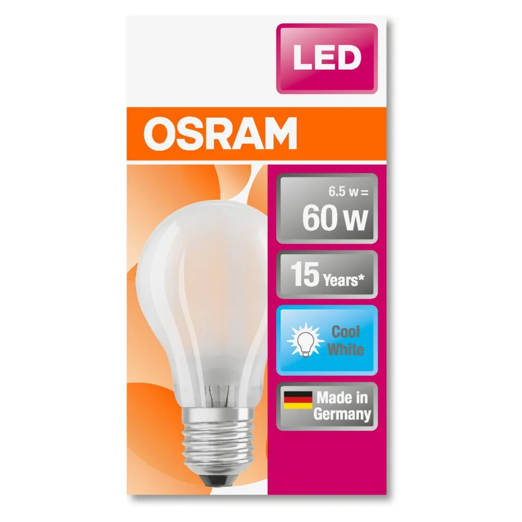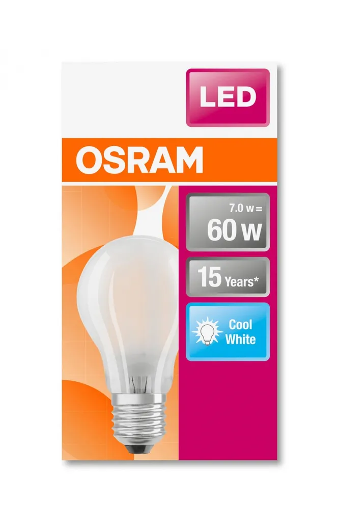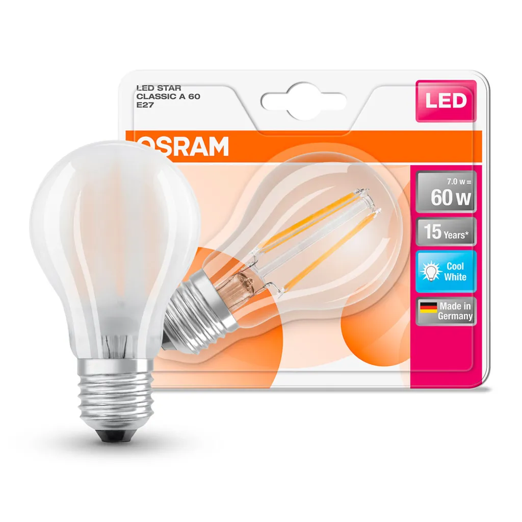Osram LED Filament Leuchtmittel Birnenform A60 7W = 60W E27 matt kaltweiß 4000K