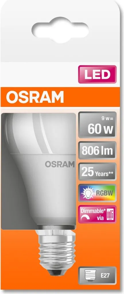 Produktname des Herstellers: LED Star+ Classic A RGBW FR 60 dimmbare 9W/827 E27 Glühbirne mit Fernbedienung