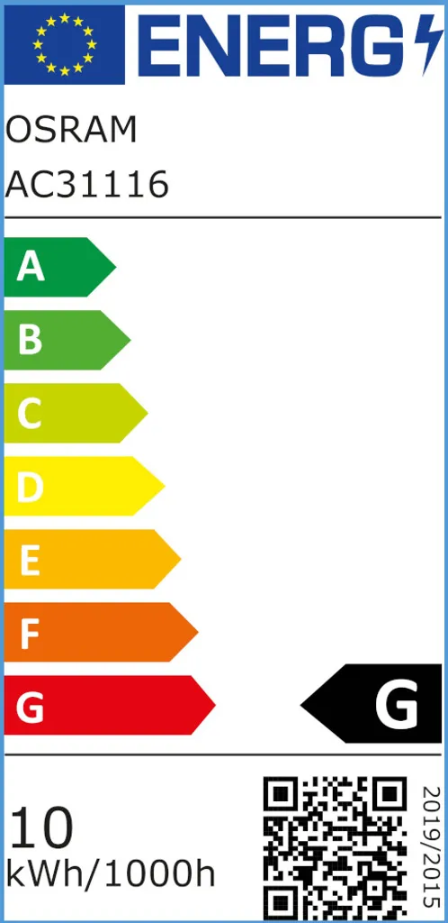 - Energieeffizienzklasse der Lichtquelle gemäß EU-Verordnung 2019/2015: G