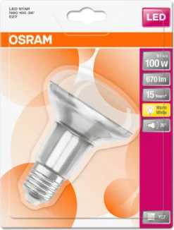 Osram LED Star Leuchtmittel Glas Reflektor R80 9,1W = 100W E27 matt 670lm FS warmweiß 2700K flood 36°