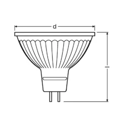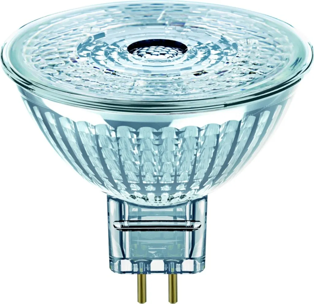Niedervolt-LED-Reflektorlampen MR16 mit Retrofit-Stecksockel. Produkteigenschaften: LED-Alternative zu Niedervolthalogenlampen. Hohe Farbkonsistenz: ? 6 SDCM (Schwellwerteinheit). Nicht dimmbar. Sockel: GU5.3. Lampe aus Glas. Gute Lichtqualität Farbwiedergabeindex Ra: ? 80. Lebensdauer: bis zu 15.000 h. Produktvorteile: Einfacher, schneller und sicherer Lampenaustausch ohne Umverdrahtung. Design, Abmessungen, Lichtstrom vergleichbar mit einer Glüh- oder Halogenlampe. Geringer Wartungsaufwand durch lange Lebensdauer. Keine UV- und IR-nahen Anteile im Lichtstrahl. Sofort 100 % Licht, keine Aufwärmzeit. Anwendungsgebiete: Verkaufs- und Ausstellungsräume. Anwendungen im Haushalt. Anwendung im Gewerbe. Akzentbeleuchtung. Einsatz im Außenbereich nur in Außenleuchten (mindestens IP65). Technische Ausstattung: Bestückt mit High-Power-LED.
